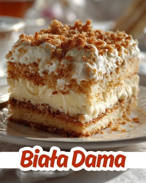 Składniki ogólne: ciasto z biszkoptem, krem budyniowy, masa serowa (twaróg + śmietana), dodatki kokosowe, brzoskwinie