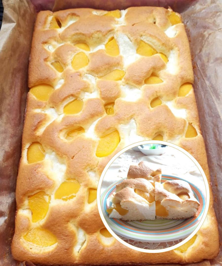 🍽️ Łatwe do przygotowania – wystarczy wlać ciasto, dodawać nadzienie łyżką i udekorować brzoskwiniami.