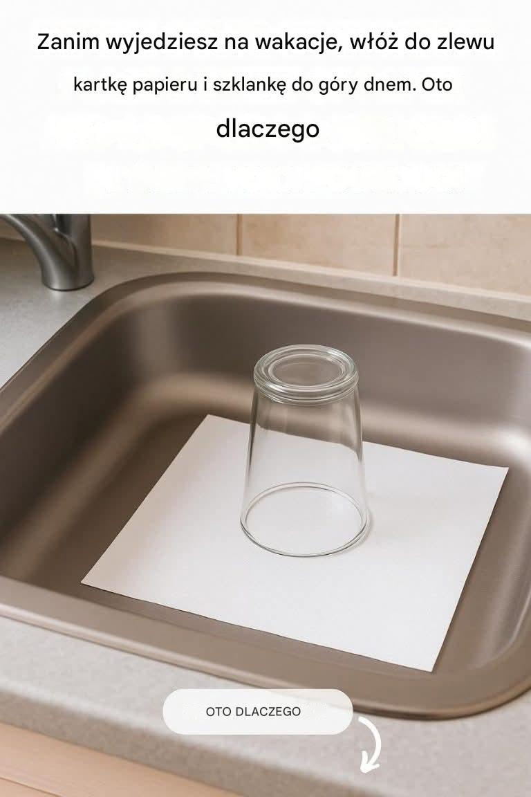 Kiedy myślimy o planowaniu wakacji, często myślimy o zarezerwowaniu hotelu, spakowaniu walizki, sprawdzeniu dowodu osobistego, zaprogramowaniu GPS-a czy upewnieniu się, że rośliny będą podlewane podczas naszej nieobecności. Ale istnieje dyskretny, niemal niewidoczny gest, który może zapobiec bardzo nieprzyjemnej niespodziance po powrocie: zostawienie przewróconej szklanki na kartce papieru w kuchennym zlewie.
